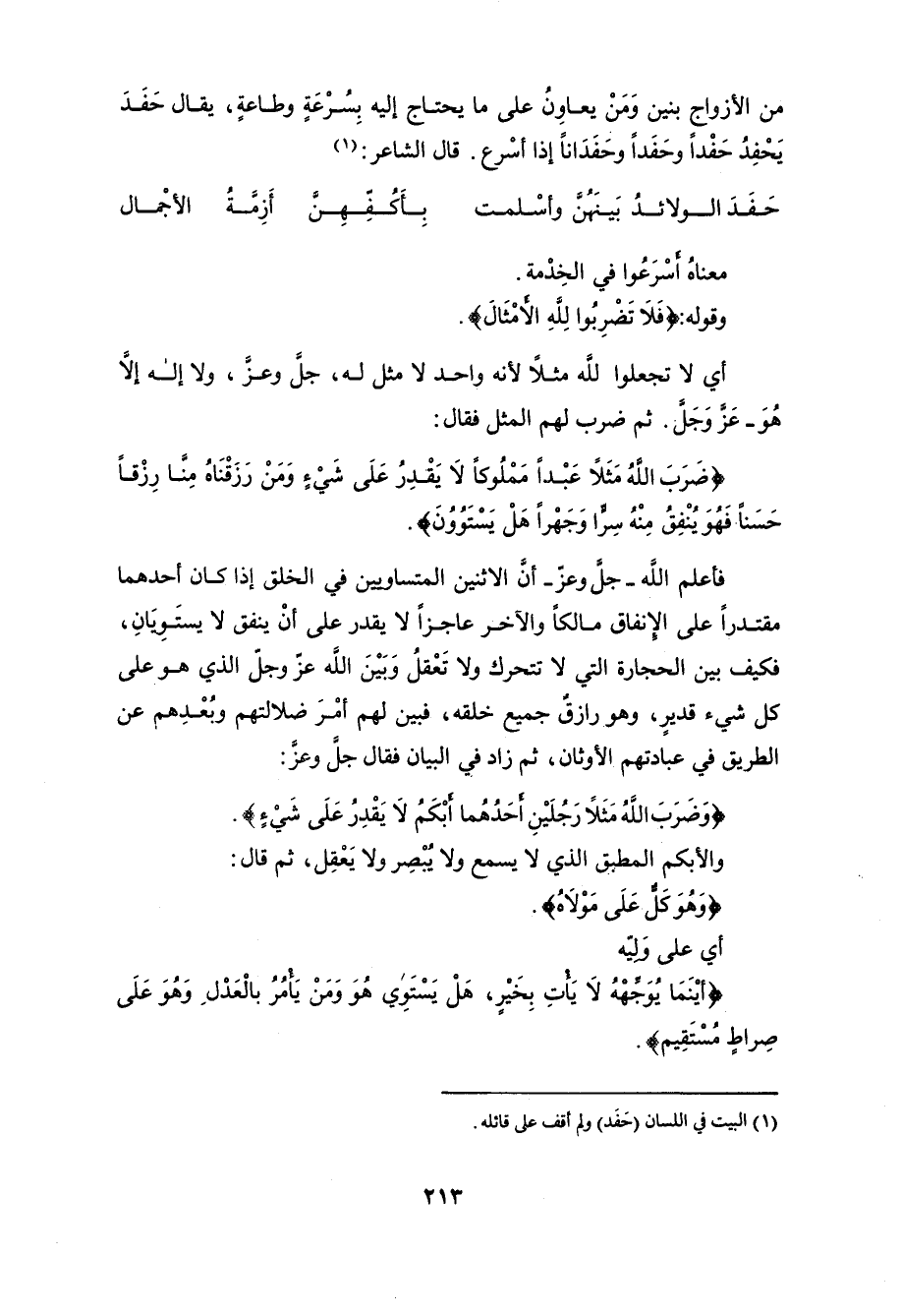 (ضَرَبَ اللَّهُ مَثَلًا عَبْدًا مَمْلُوكًا لَا يَقْدِرُ عَلَى شَيْءٍ وَمَنْ رَزَقْنَاهُ مِنَّا رِزْقًا حَسَنًا فَهُوَ يُنْفِقُ مِنْهُ سِرًّا وَجَهْرًا هَلْ يَسْتَوُونَ الْحَمْدُ لِلَّهِ بَلْ أَكْثَرُهُمْ لَا يَعْلَمُونَ (75)