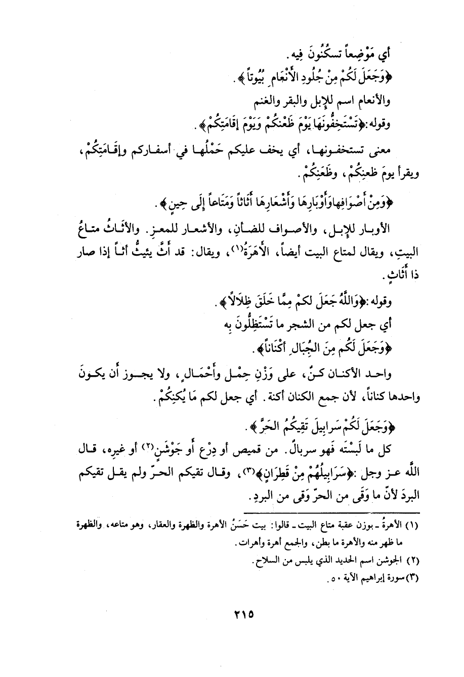 الله عزَّ وجلَّ: (سَرَابِيلُهُمْ مِنْ قَطِرَانٍ)، وقال (تَقِيكُمُ الْحَرَّ) ولم يقل تقيكم