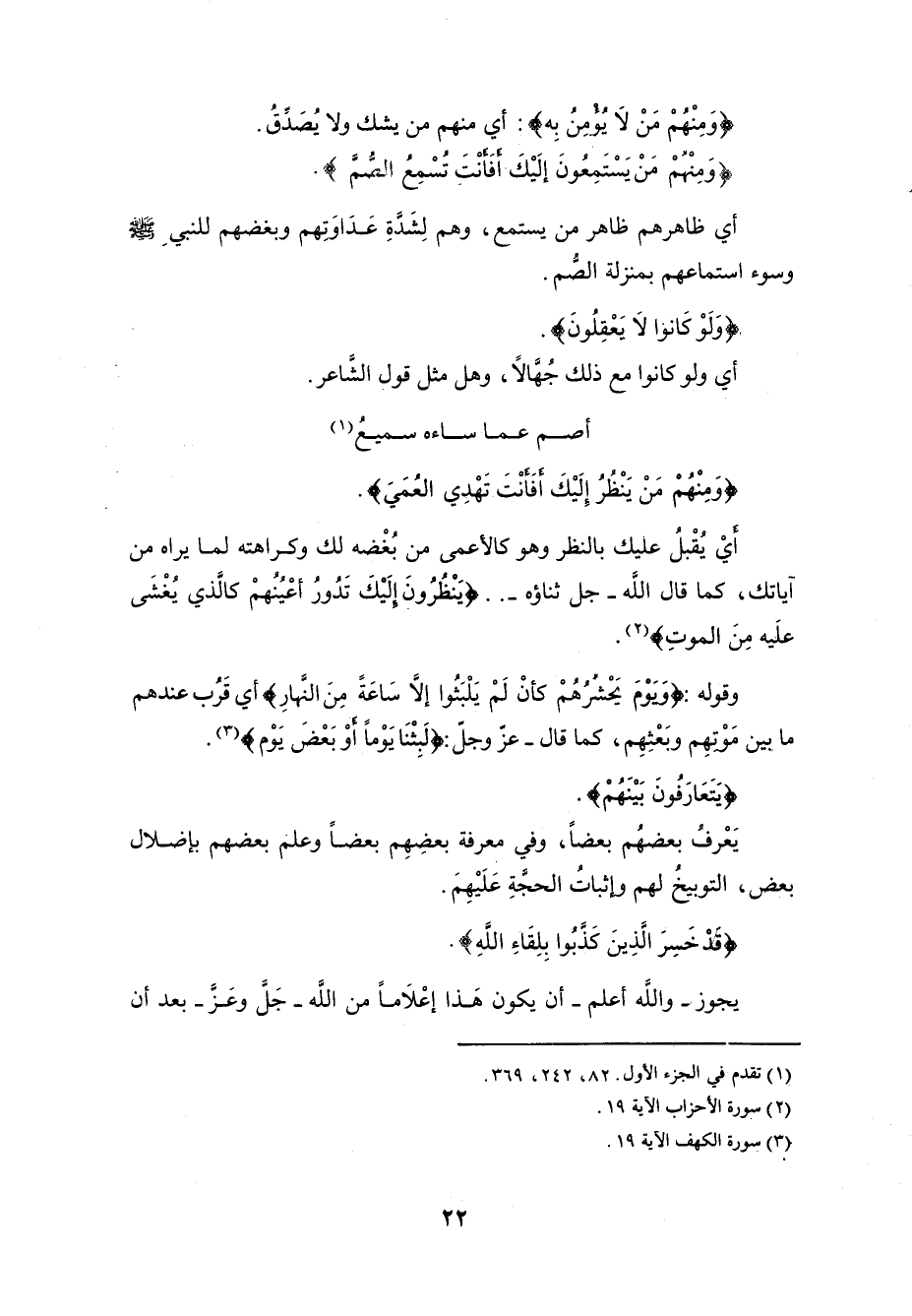 وقوله: (وَيَوْمَ يَحْشُرُهُمْ كَأَنْ لَمْ يَلْبَثُوا إِلَّا سَاعَةً مِنَ النَّهَارِ يَتَعَارَفُونَ بَيْنَهُمْ قَدْ خَسِرَ الَّذِينَ كَذَّبُوا بِلِقَاءِ اللَّهِ وَمَا كَانُوا مُهْتَدِينَ (45)