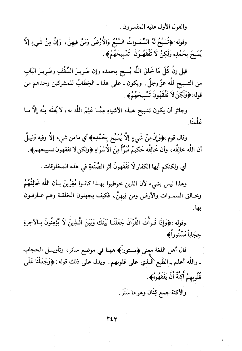 وجائز أن يكون تسبيح هذه الأشياءِ مِمَّا عَلِمَ اللَّه به، لايُفقَه مِنْه إلا ما