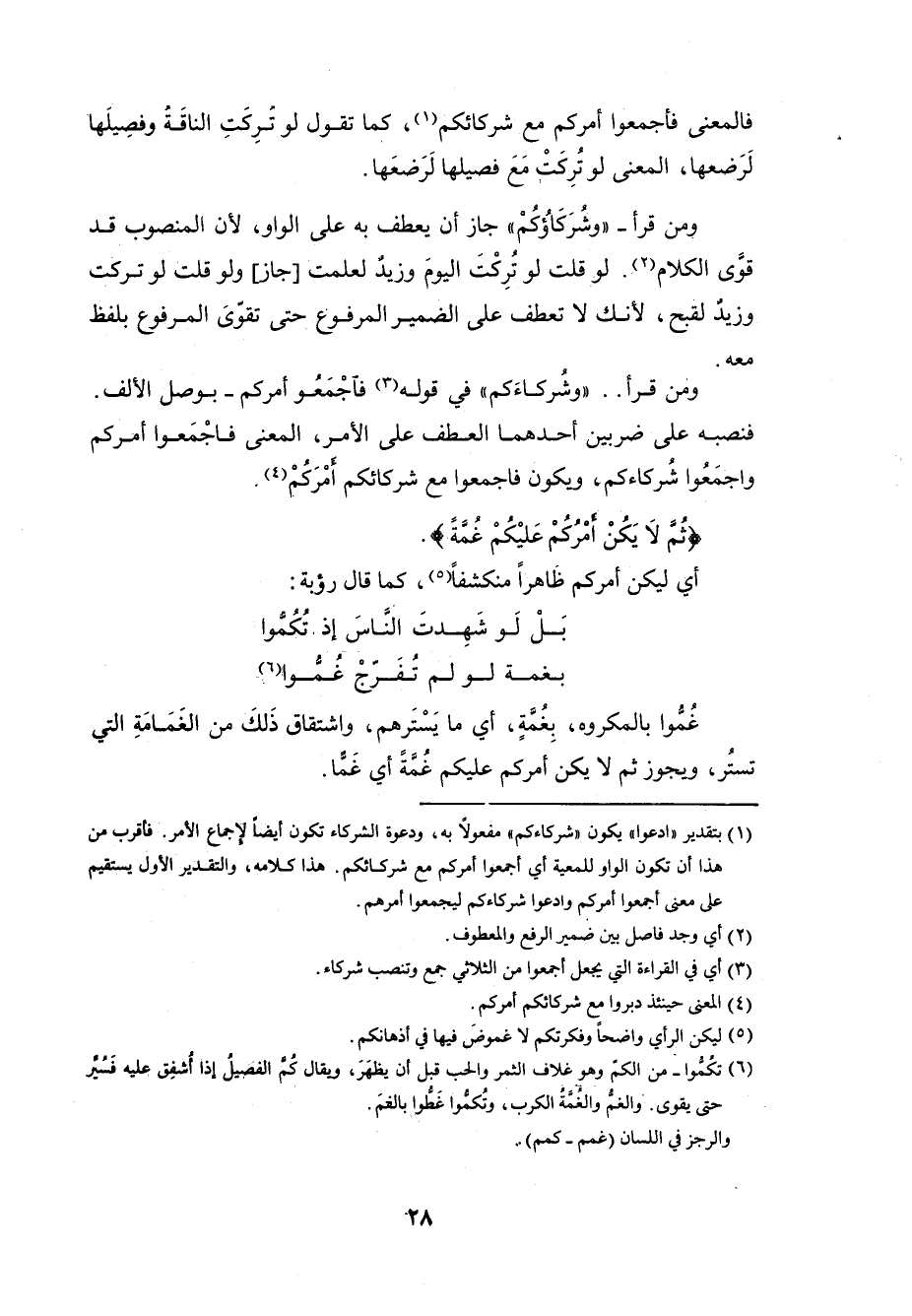 ومن قرأ - " وشُرَكَاؤُكُمْ " جاز أن يعطف به على الواو، لأن المنصوب قد