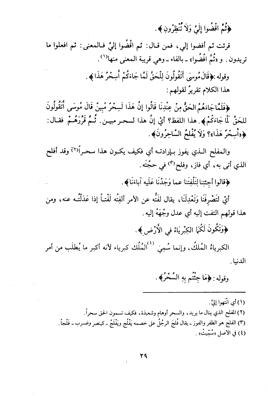 وقوله: (قَالَ مُوسَى أَتَقُولُونَ لِلْحَقِّ لَمَّا جَاءَكُمْ أَسِحْرٌ هَذَا وَلَا يُفْلِحُ السَّاحِرُونَ (77)