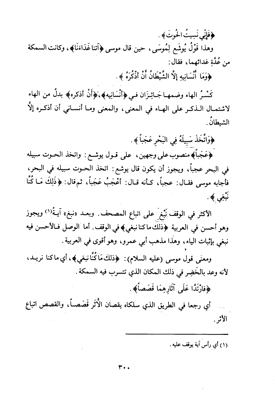 وبعد " نبغ " آيةً ويجوز وهو أحسن في العربية (ذلك ما كنا نبغي) في الوقف. أما الوصل فالأحسن فيه نبغي بإثبات الياء، وهذا مذهب أبي عمرو، وهو أقوى في العربية.