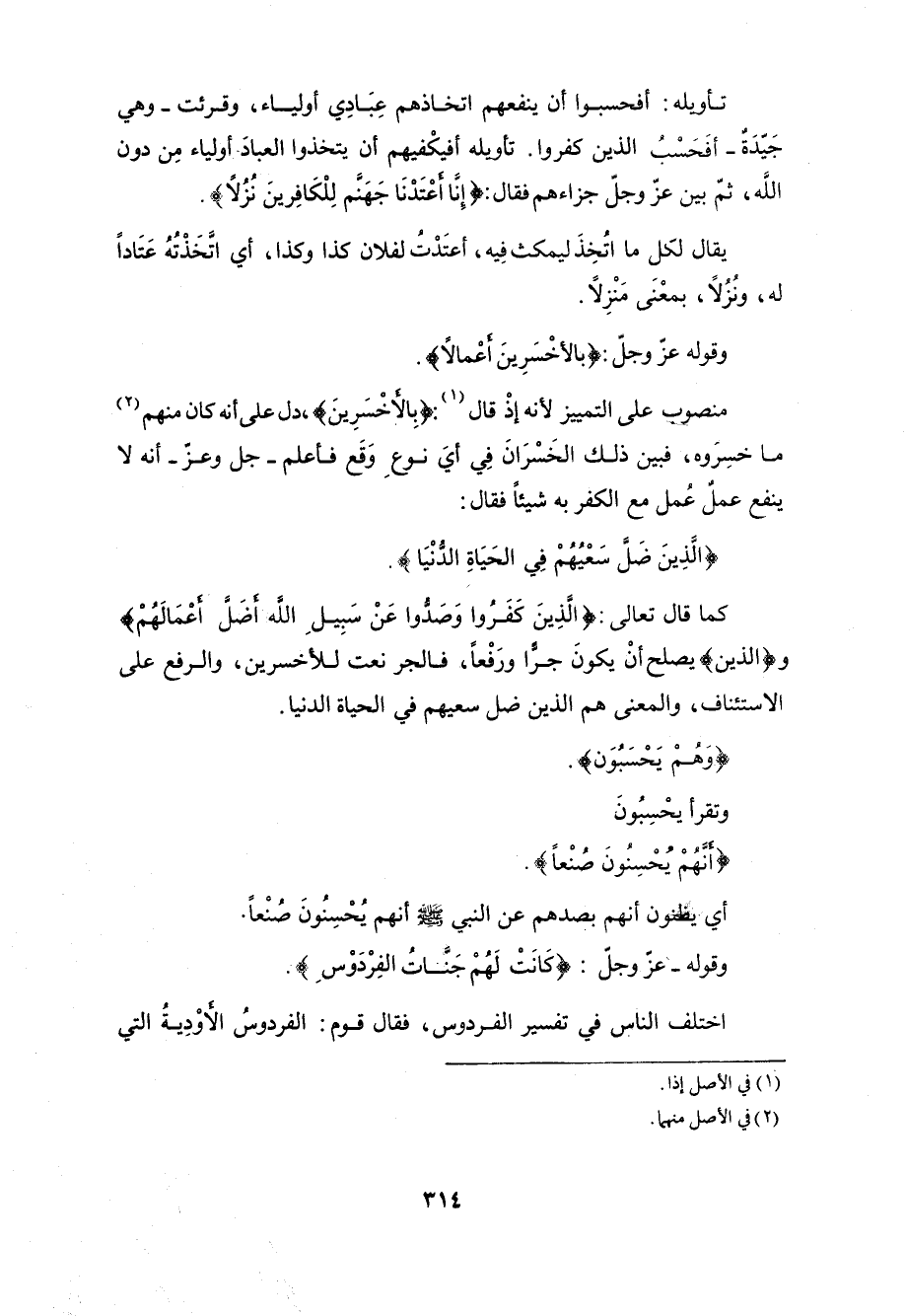 وقوله عزَّ وجلَّ: (قُلْ هَلْ نُنَبِّئُكُمْ بِالْأَخْسَرِينَ أَعْمَالًا (103)