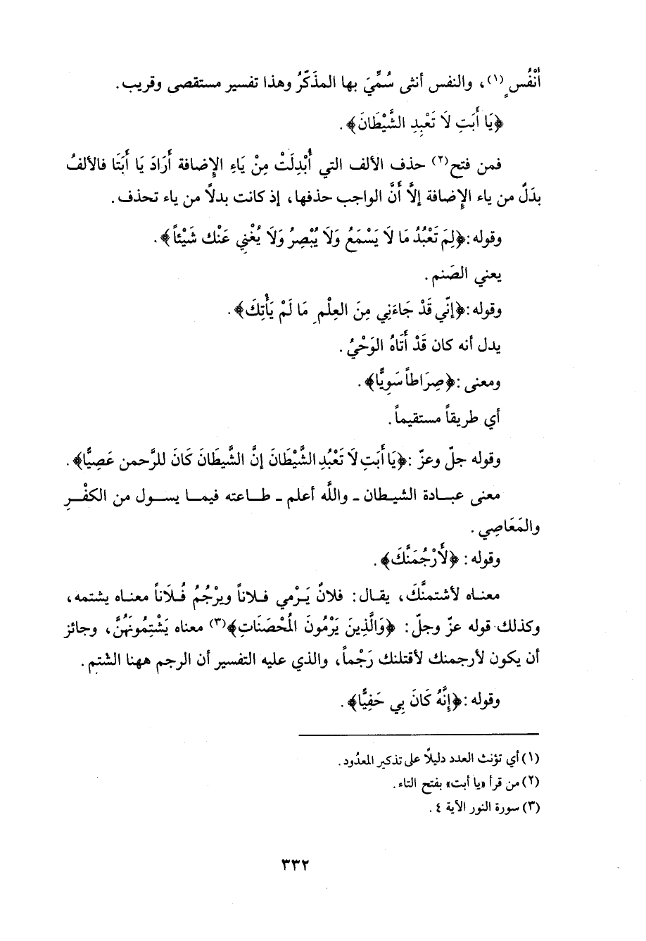 وقوله جلَّ وعزَّ: (يَا أَبَتِ لَا تَعْبُدِ الشَّيْطَانَ إِنَّ الشَّيْطَانَ كَانَ لِلرَّحْمَنِ عَصِيًّا (44)