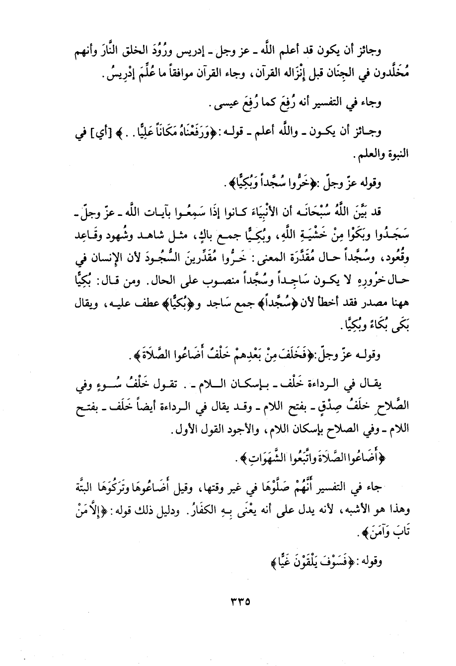 وقوله عزَّ وجلَّ: (فَخَلَفَ مِنْ بَعْدِهِمْ خَلْفٌ أَضَاعُوا الصَّلَاةَ وَاتَّبَعُوا الشَّهَوَاتِ فَسَوْفَ يَلْقَوْنَ غَيًّا (59)