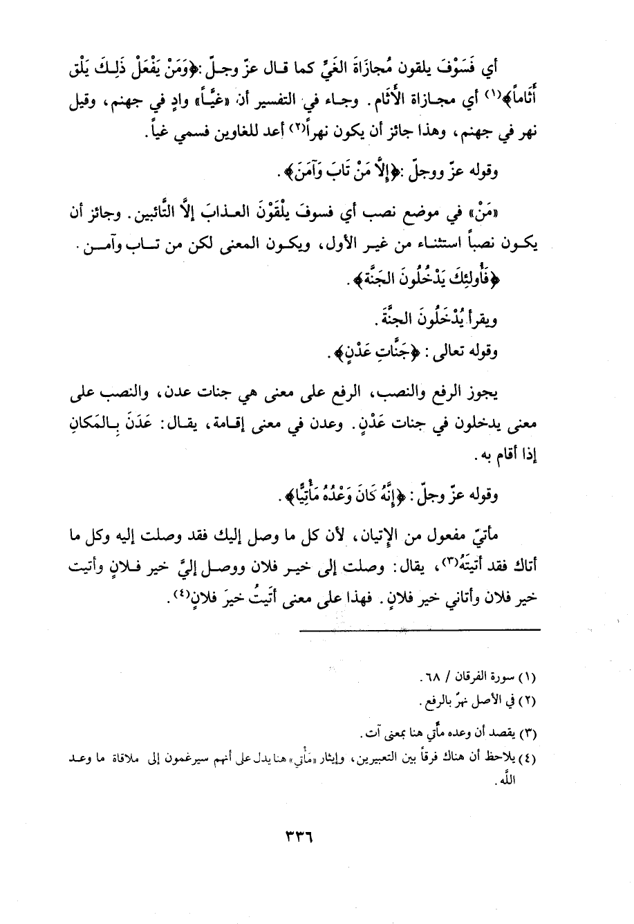 أي فَسَوْفَ يلقون مُجازَاةَ الغَى كما قال عزَّ وجلَّ: (وَمَنْ يَفْعَلْ ذَلِكَ يَلْقَ أَثَامًا) أي مجازاة الأثَام.