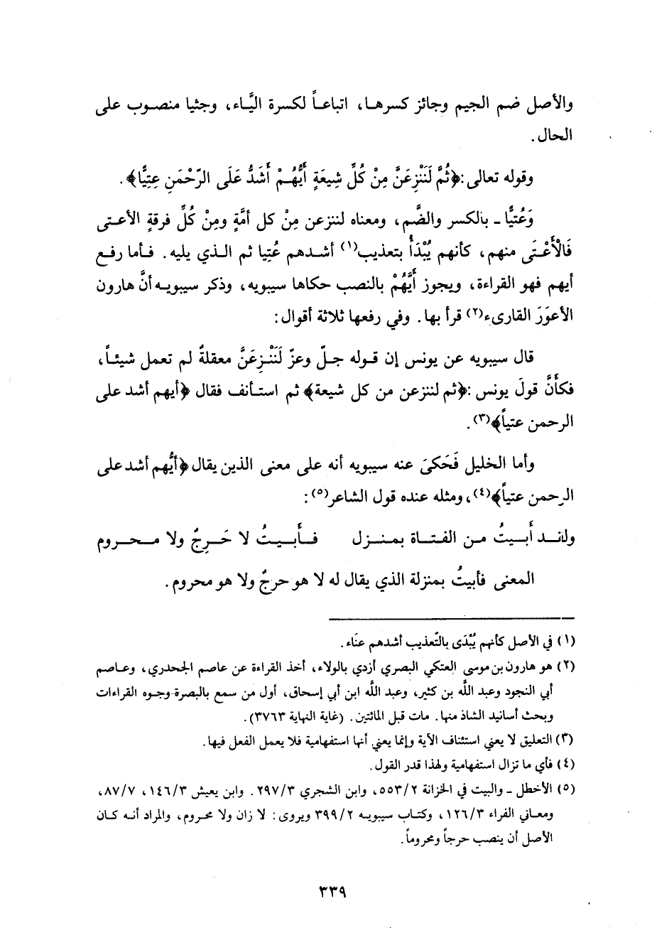 الرحمن عتياً)، ومثله عنده قول الشاعر: