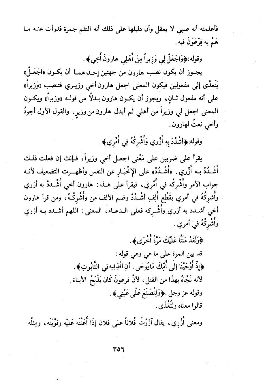 ومن قرأ هارون أخي اشدد به أزري وأشْرِكه فعلى الدعاء.
