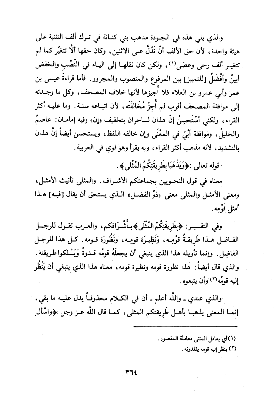 وفي التفسير: (بِطَرِيقَتِكُمُ الْمُثْلَى) بأشْرَافكم، والعرب تقول للرجل