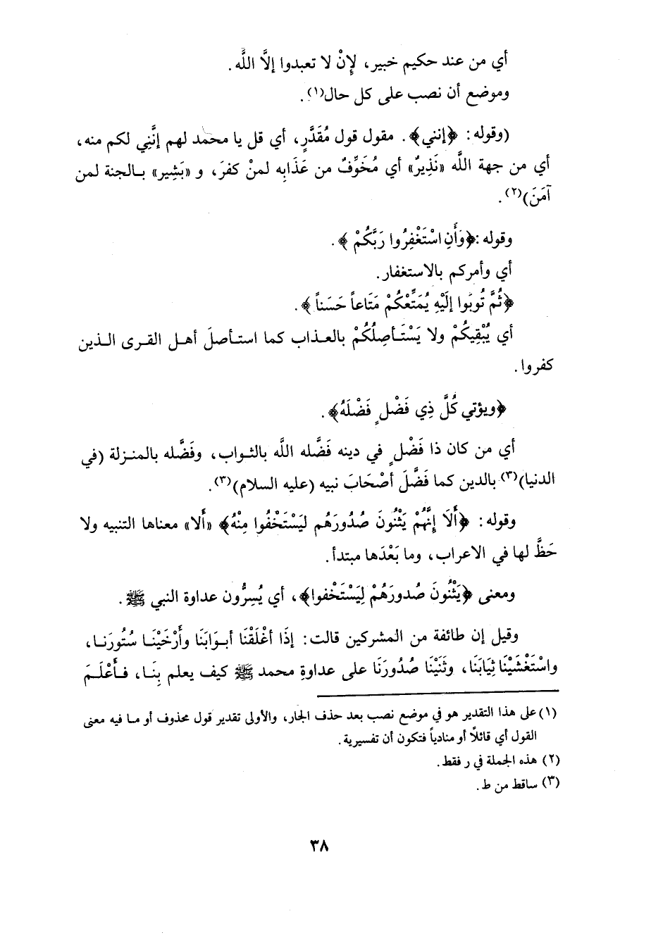وقوله: (وَأَنِ اسْتَغْفِرُوا رَبَّكُمْ ثُمَّ تُوبُوا إِلَيْهِ يُمَتِّعْكُمْ مَتَاعًا حَسَنًا إِلَى أَجَلٍ مُسَمًّى وَيُؤْتِ كُلَّ ذِي فَضْلٍ فَضْلَهُ وَإِنْ تَوَلَّوْا فَإِنِّي أَخَافُ عَلَيْكُمْ عَذَابَ يَوْمٍ كَبِيرٍ (3)