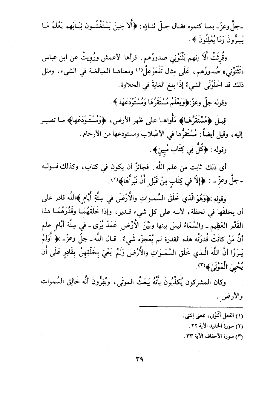 قال اللَّه - جلَّ وعزَّ -: (أَوَلَمْ يَرَوْا أَنَّ اللَّهَ الَّذِي خَلَقَ السَّمَاوَاتِ وَالْأَرْضَ وَلَمْ يَعْيَ بِخَلْقِهِنَّ بِقَادِرٍ عَلَى أَنْ يُحْيِيَ الْمَوْتَى).