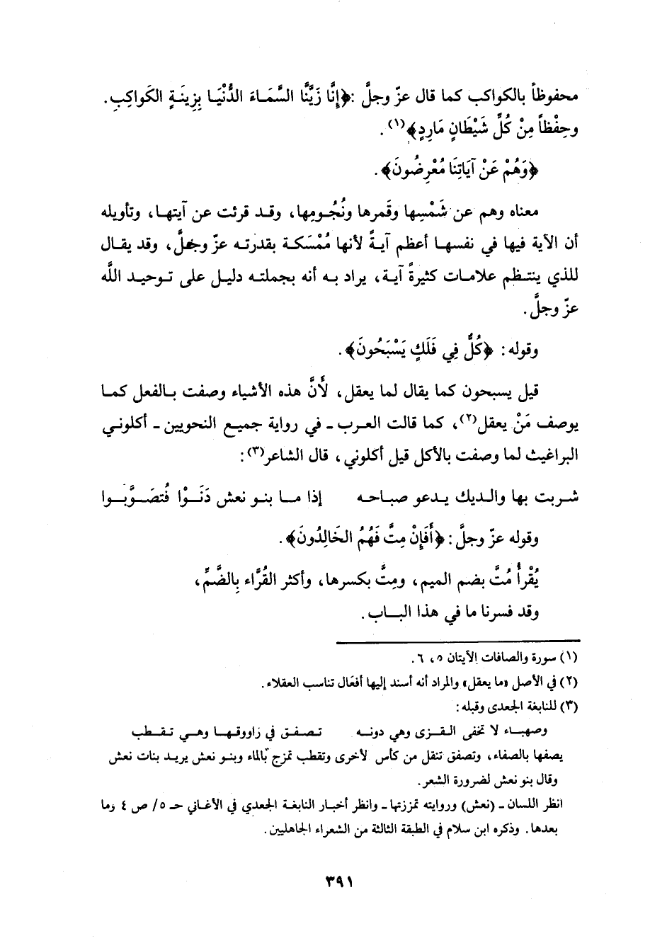 وقوله: (وَهُوَ الَّذِي خَلَقَ اللَّيْلَ وَالنَّهَارَ وَالشَّمْسَ وَالْقَمَرَ كُلٌّ فِي فَلَكٍ يَسْبَحُونَ (33)