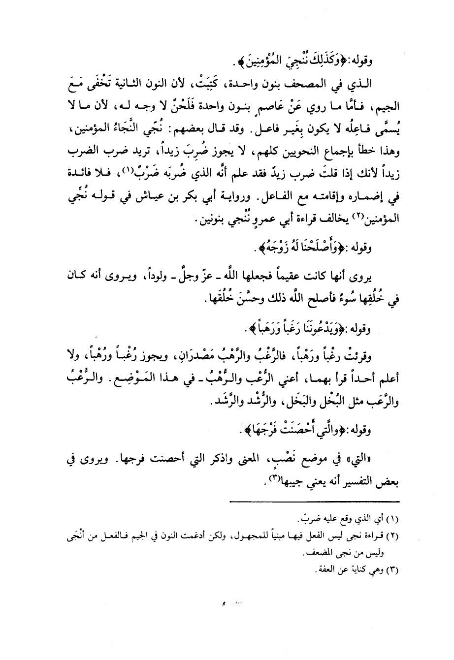 وهذا القراءةُ متواترةٌ، ولا التفاتَ على مَنْ طَعَن على قارئِها، وإنْ كان أبو عليٍ قال: «هي لحنٌ». وهذه جرأةٌ منه قد سبقه إليها أبو إسحاق الزجَّاج. وأمَّا الزمخشري فلم يَطْعن عليها، إنما طعن على بعضِ الأوجهِ التي قدَّمْتُها فقال: «ومَنْ تَمَحَّل لصحتِه فجعله فُعِل وقال: نُجِّي النَّجاءُ المؤمنين، فأرسل الياء وأسنده إلى مصدرِه ونَصَبَ المؤمنين، فتعسُّفٌ باردُ التعسُّفِ». قلت: فلم يَرْتَضِ هذا التخريجَ بل للقراءةِ عنده تخريجٌ آخرُ. وقد يمكنُ أن يكونَ هو الذي بدأت به لسلامتِه ممَّا تقدَّم من الضعف.