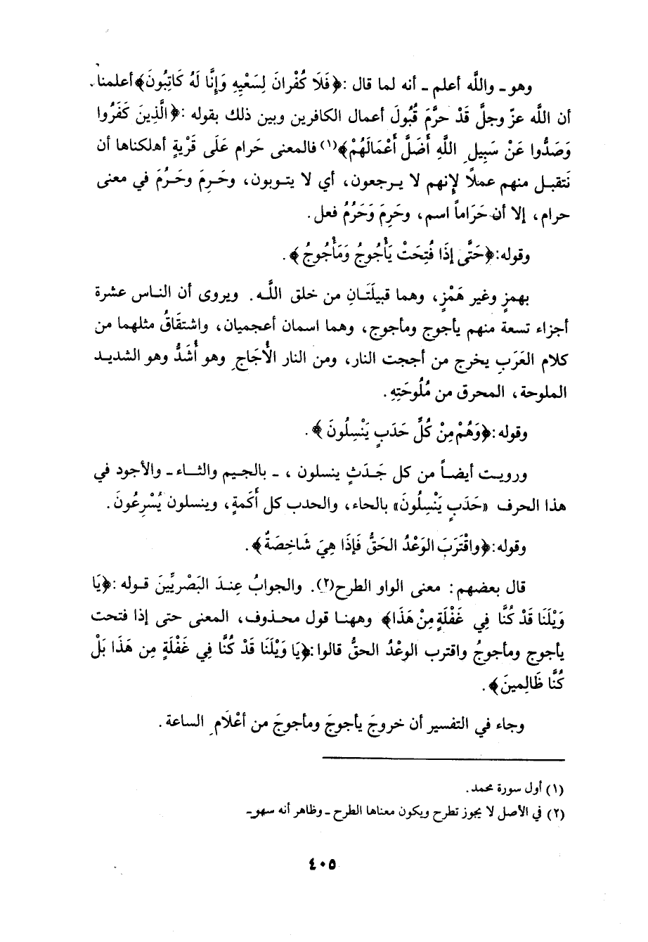 وجاء في التفسير أن خروجَ يأجوجَ ومأجوجَ من أعْلَامِ الساعة.