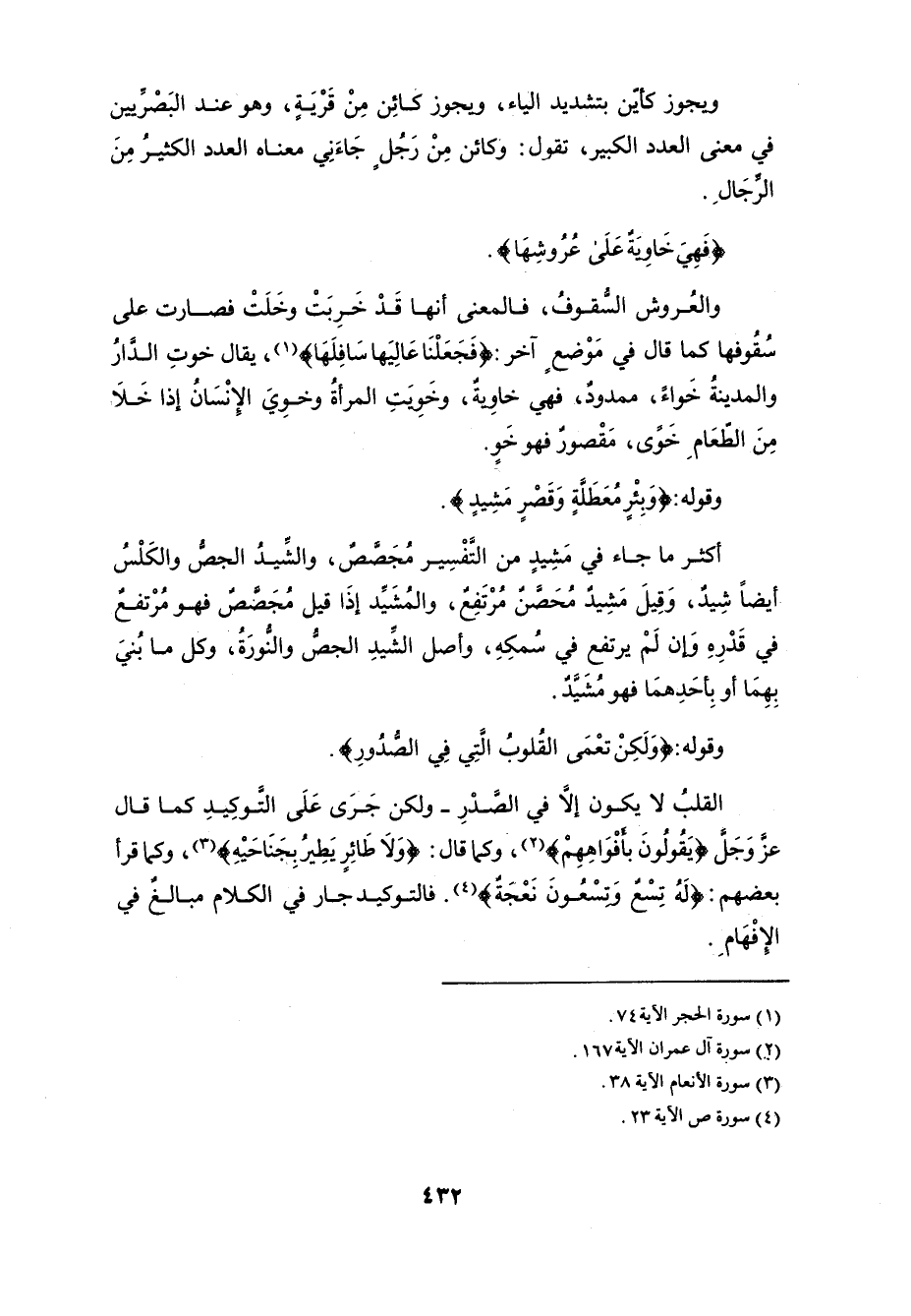 ويجوز كائن بتشديد الياء، ويجوز كائِن مِنْ قَرْيَةٍ، وهو عند البَصْريين