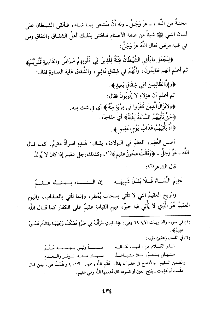 لسان النبي - صلى الله عليه وسلم - شيئاً من صفة الأصنام فافتتن بذلك أهلُ الشقاق والنفاقِ ومن في قلبه مرض (1) فقال اللَّهُ عر وَجَل: