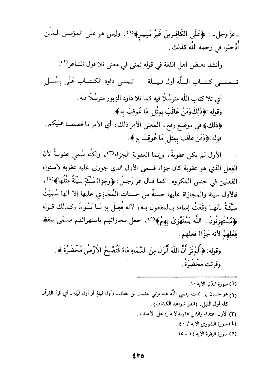 تَمَنَّى كتابَ اللهِ أَوَّلَ لَيْلِه. . . وآخِرَه لاقَى حِمامَ المَقادِرِ