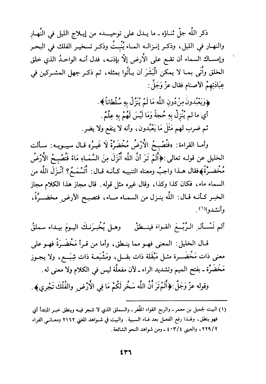 والنهار في الليل، وذكر إنزاله الماء يُنْبِتُ وذكر تسخير الفلك في البحر