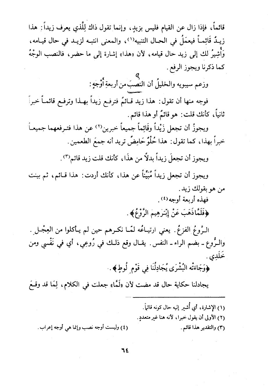 وزعم سيبويه والخليلُ أن النصبَ من أربعةِ أوْجهٍ: