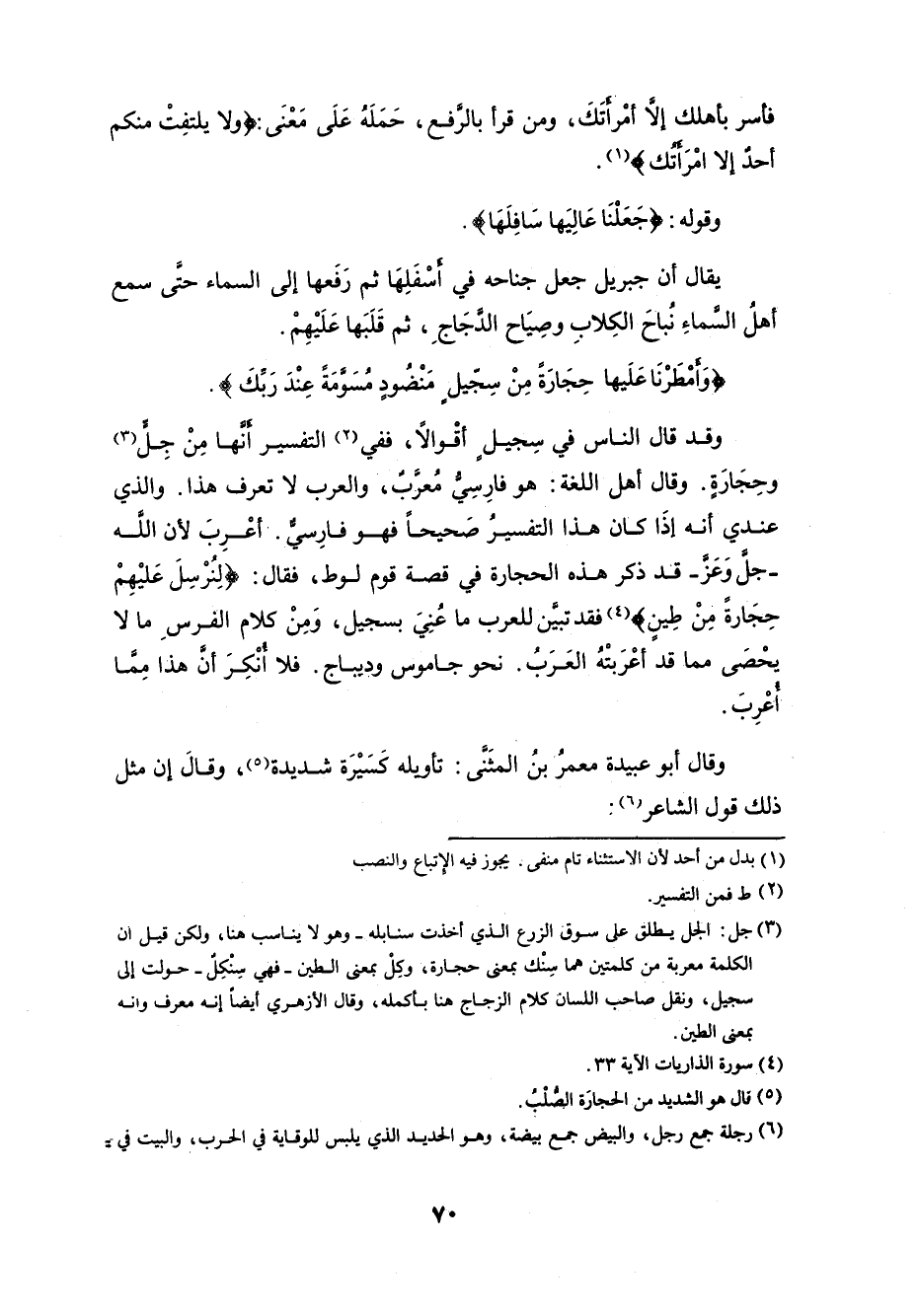 وحِجَارَة. وقال أهل اللغة: هو فارِسِي مُعرَّبٌ، والعرب لا تعرف هذا. والذي عندي أنه إذَا كان هذا التفسيرُ صَحيحاً فهو فارِسي أعْرِبَ لأن اللَّه