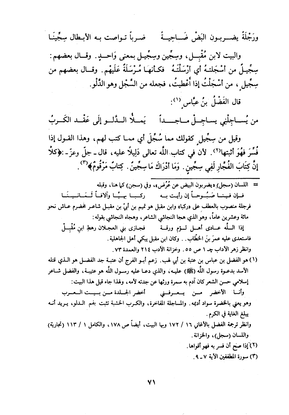 والبيت لابن مُقْبِل، وسِجين وسِجيل بمعنى وَاحدٍ.