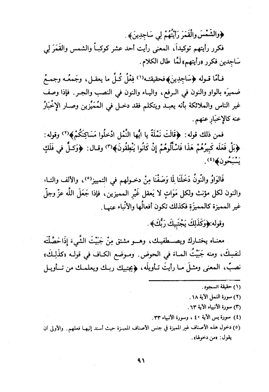 فأمَّا قوله (سَاجِدِين) فحقيقته فِعْلُ كُلِّ ما يعقل، وجَمعُه وجمعُ