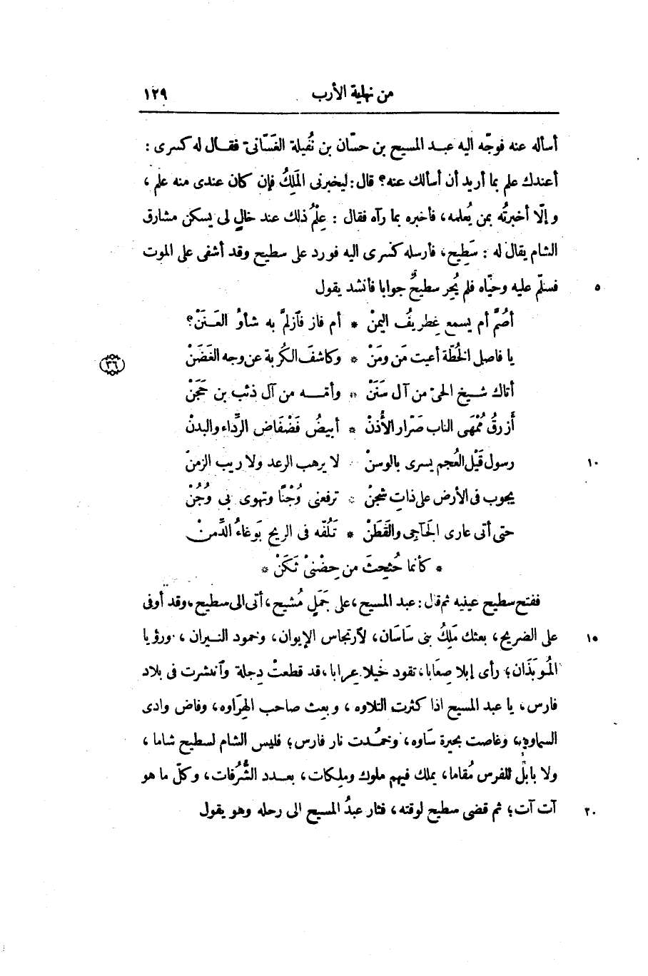 أسأله عنه فوجّه اليه عبد المسيح بن حسّان بن نفيلة الغسّانىّ فقال له كسرى: