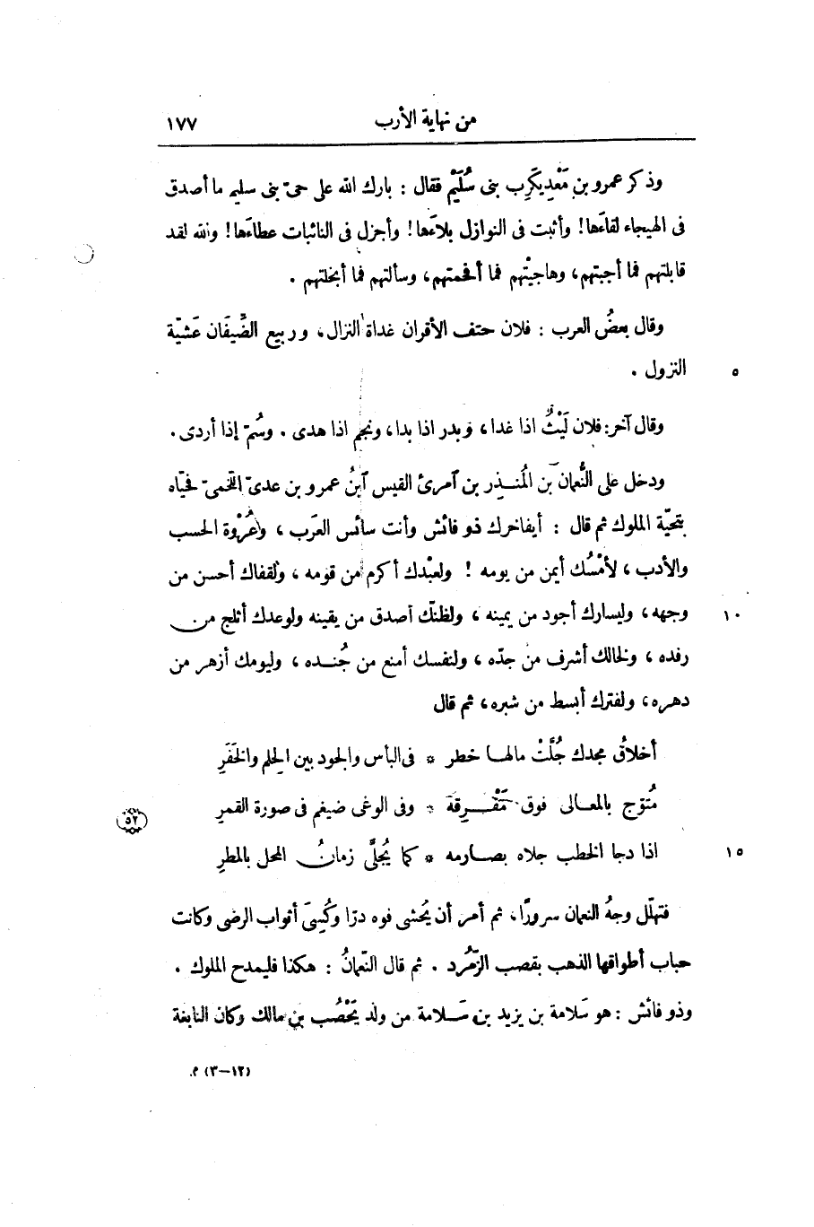 فتهلّل وجه النعمان سرورا، ثم أمر أن يحشى فوه درّا وكسى أثواب الرضى وكانت حباب أطواقها الذهب بقصب الزمرد. ثم قال النّعمان: هكذا فليمدح الملوك.