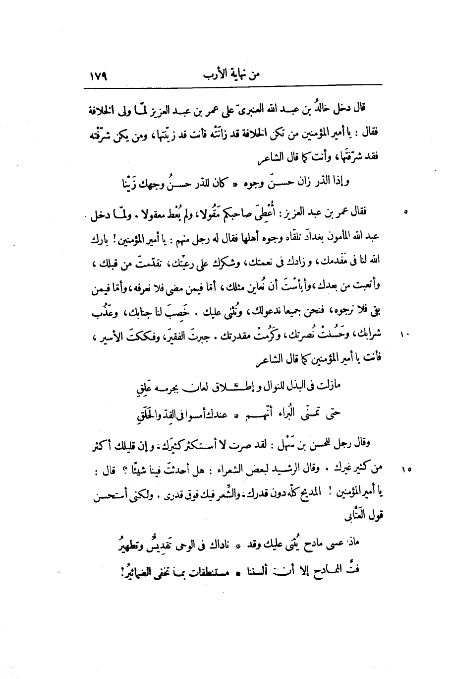 قال دخل خالد بن عبد الله العنبرىّ على عمر بن عبد العزيز لمّا ولى الخلافة فقال: يا أمير المؤمنين من تكن الخلافة قد زانته فأنت قد زيّنتها، ومن يكن شرّفته فقد شرّفتها، وأنت كما قال الشاعر