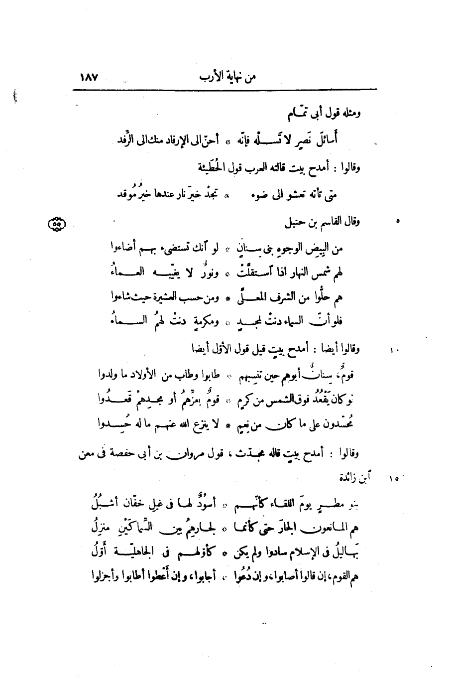 من البيض الوجوه بنى سنان ... لو انك تستضىء بهم أضاءوا