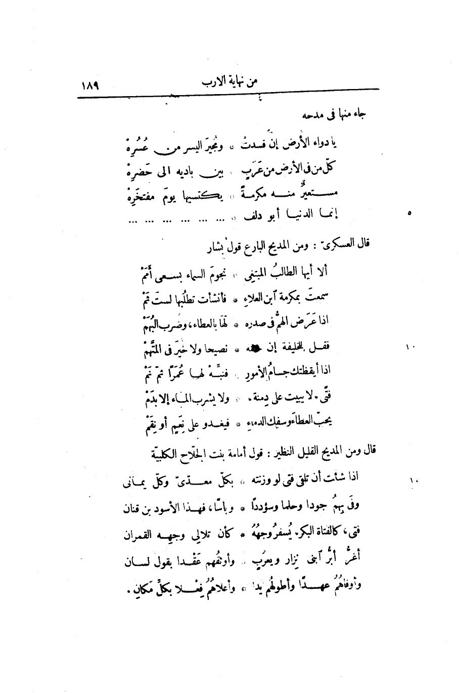 قال العسكرىّ: ومن المديح البارع قول بشار