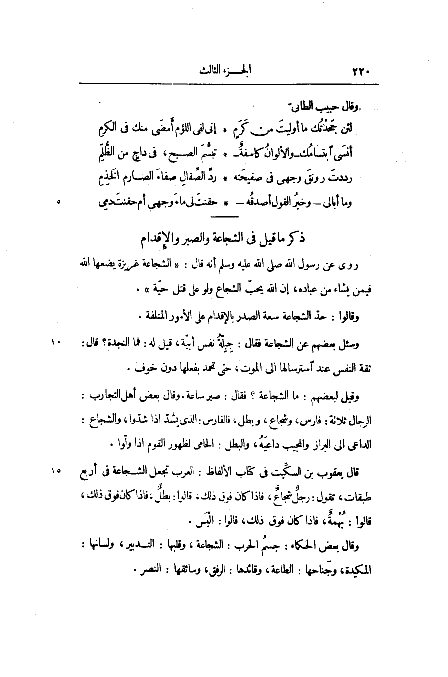 ذكر ما قيل في الشجاعة والصبر والإقدام