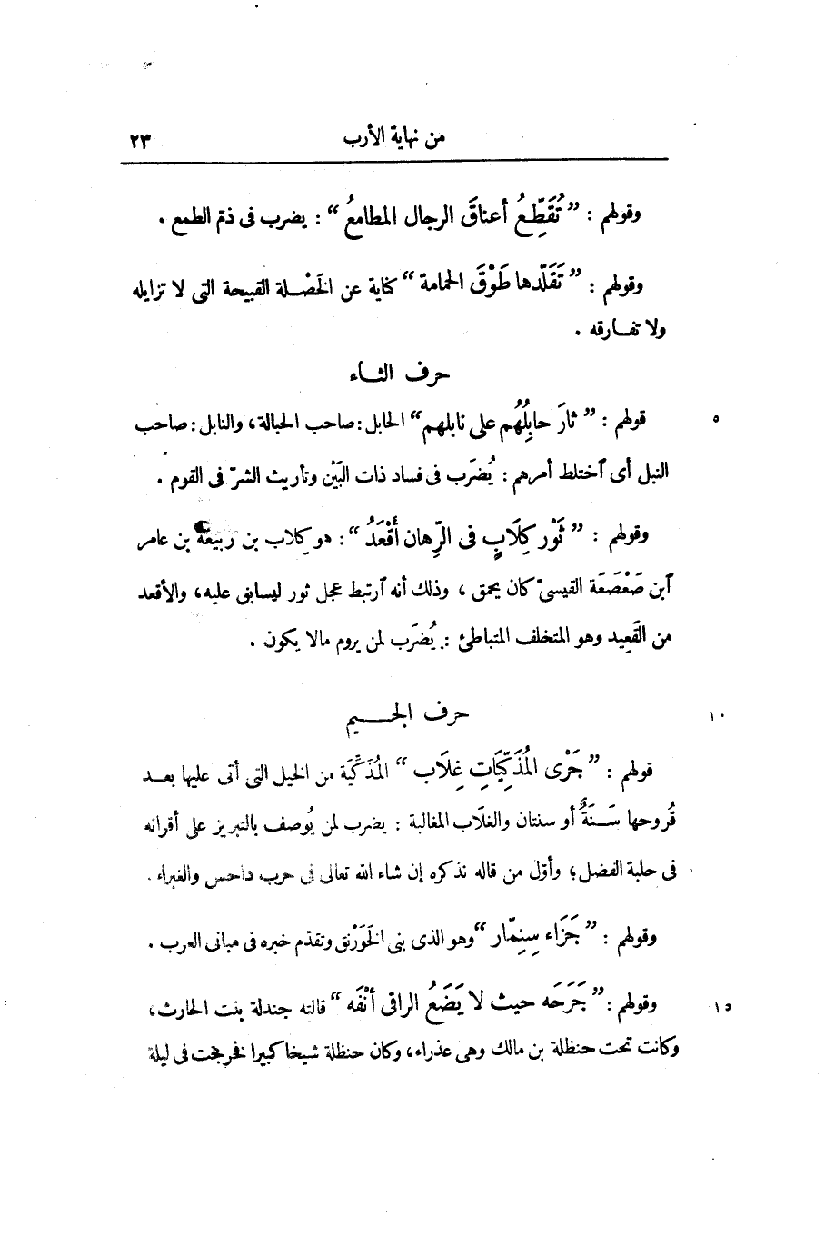 وقولهم: «جرحه حيث لا يضع الراقى أنفه» قالته جندلة بنت الحارث، وكانت تحت حنظلة بن مالك وهى عذراء، وكان حنظلة شيخا كبيرا فخرجت في ليلة