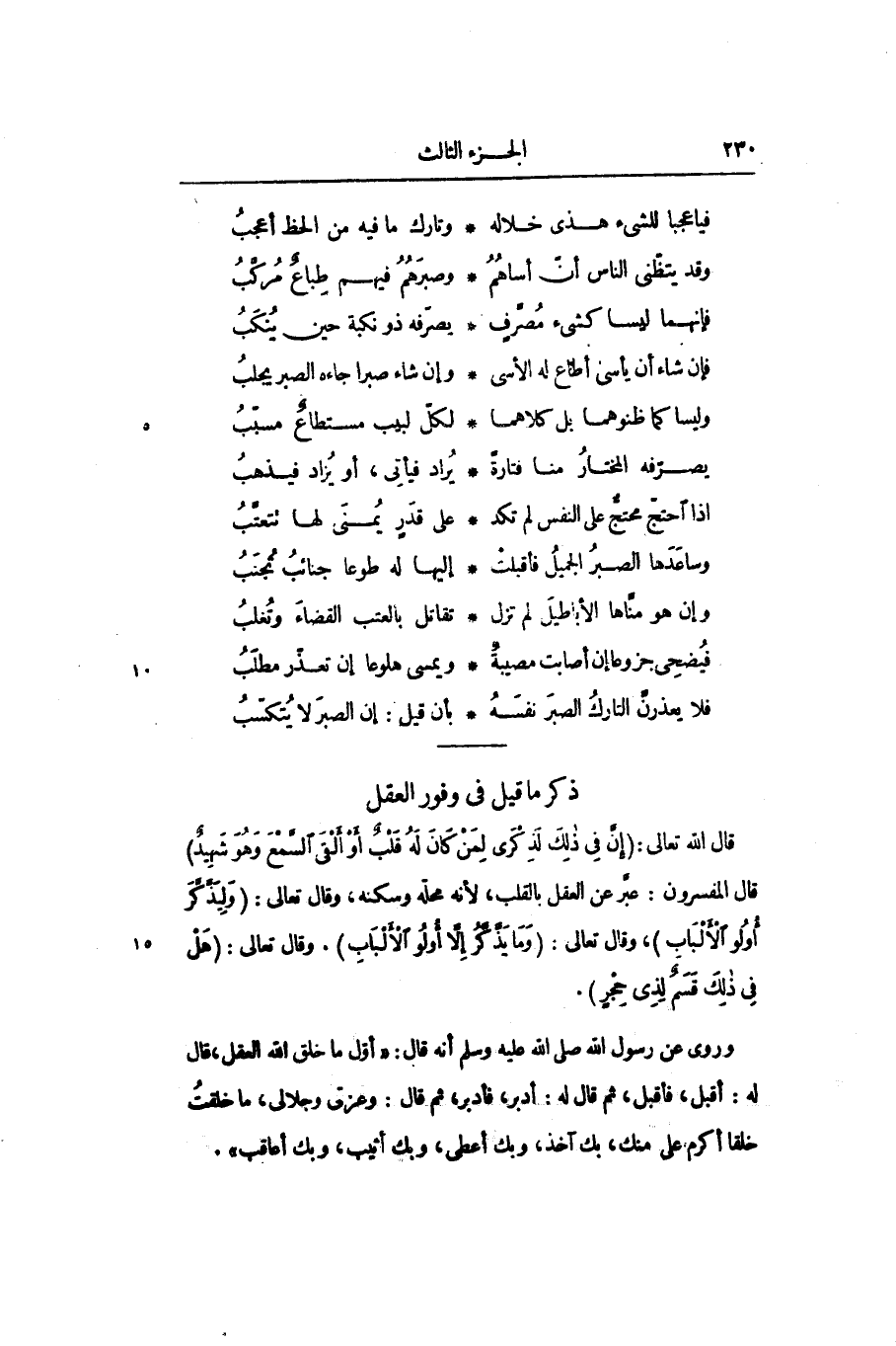 وروى عن رسول الله صلّى الله عليه وسلم أنه قال: «أوّل ما خلق الله العقل، قال له: أقبل، فأقبل، ثم قال له: أدبر، فأدبر، ثم قال: وعزتى وجلالى، ما خلقت خلقا أكرم على منك، بك آخذ، وبك أعطى، وبك أثيب، وبك أعاقب» .