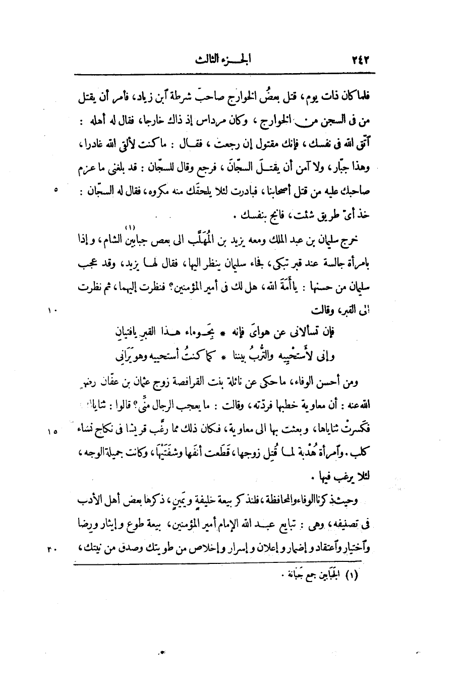 خرج سليمان بن عبد الملك ومعه يزيد بن المهلّب الى بعص جبابين «1» الشام، وإذا بامرأة جالسة عند قبر تبكى، فجاء سليمان ينظر اليها، فقال لها يزيد، وقد عجب سليمان من حسنها: يا أمة الله، هل لك في أمير المؤمنين؟ فنظرت إليهما، ثم نظرت الى القبر، وقالت