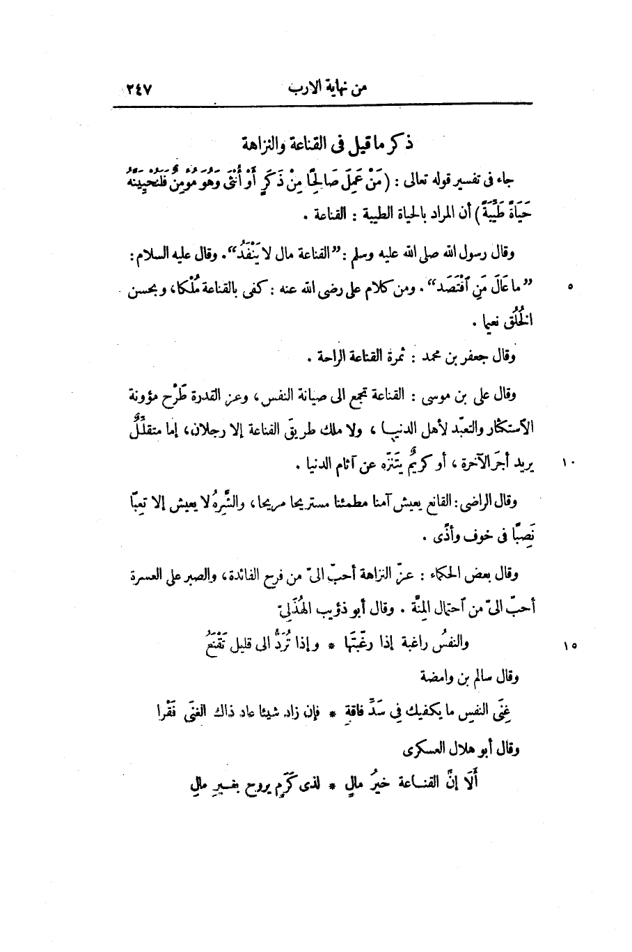 ذكر ما قيل في القناعة والنزاهة