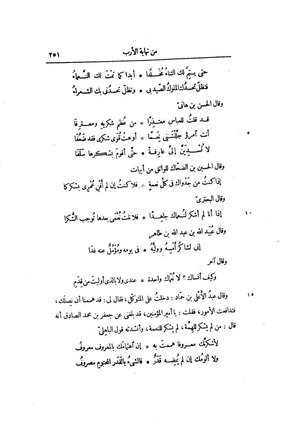 وقال عبد الأعلى بن حمّاد: دخلت على المتوكّل، فقال لى: قد هممنا أن نصلك، فتدافعت الأمور، فقلت: يا أمير المؤمنين، قد بلغنى عن جعفر بن محمد الصادق أنه قال: من لم يشكر للهمّة، لم يشكر للنعمة، وأنشدته قول الباهلىّ