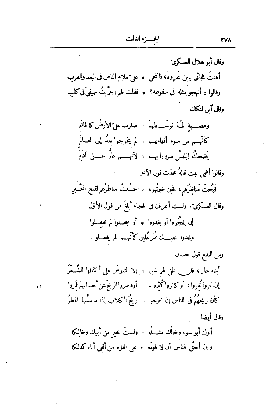 وقال العسكرىّ: ولست أعرف في الهجاء أبلغ من قول الأوّل
