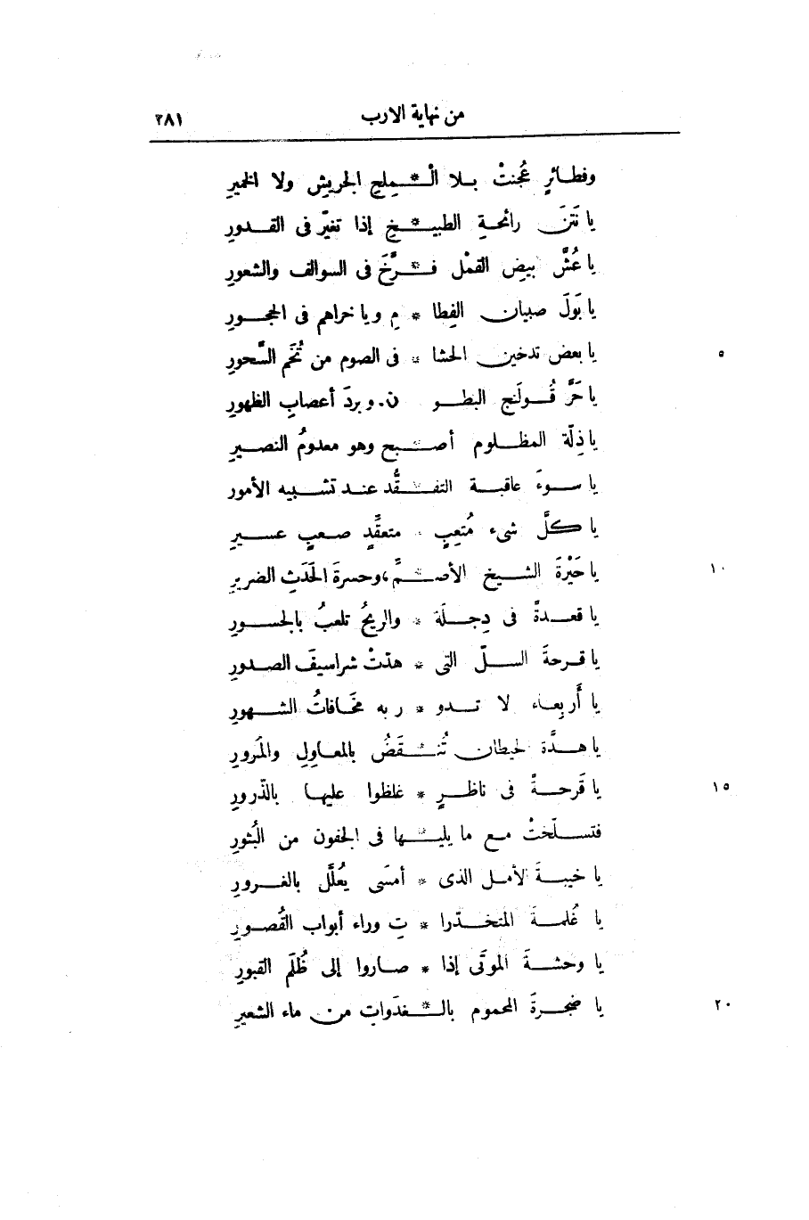 يا حرّ قولنج البطو ... ن وبردّ أعصاب الظهور
