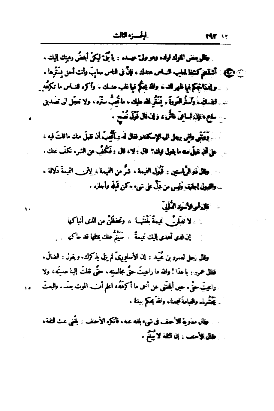 وقال رجل لعمرو بن عبيد: إن الأساورىّ لم يزل يذكرك، ويقول: الضآلّ، فقال عمرو: يا هذا! والله ما راعيت حقّ مجالسته، حتّى نقلت إلينا حديثه، ولا راعيت حقّى، حين أبلغتنى عن أخى ما أكرهه، اعلم أن الموت يعمّد، والبعث يحشرنا، والقيامة تجمعنا، والله يحكم بيننا.