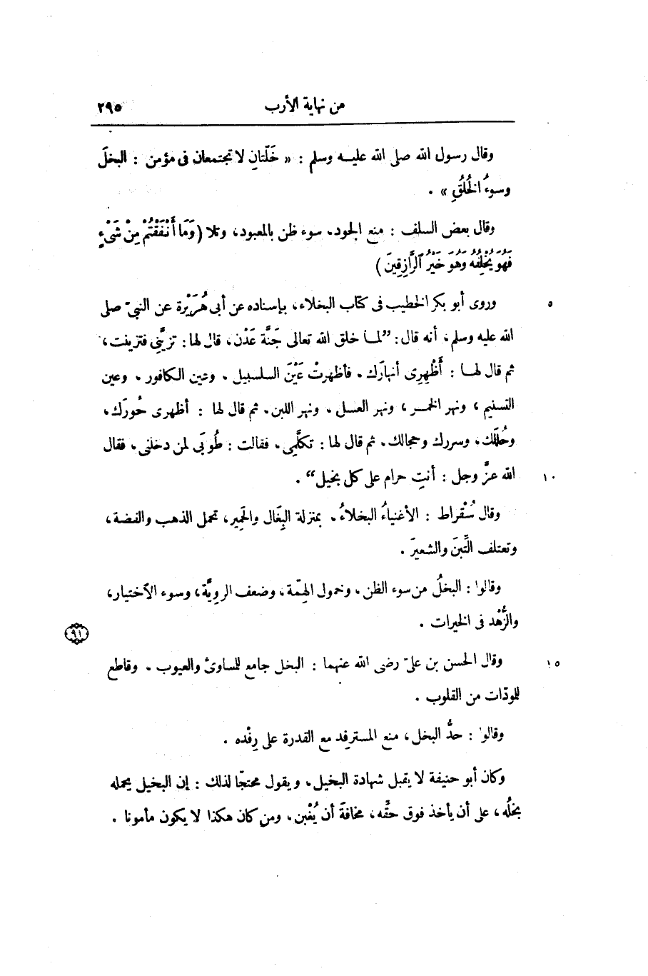 وقال رسول الله صلّى الله عليه وسلم: «خلّتان لا تجتمعان في مؤمن: البخل وسوء الخلق» .