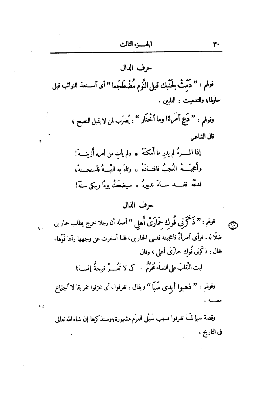 قولهم: «ذكّرنى فوك حمارى أهلى» أصله أن رجلا خرج يطلب حمارين ضلّاله، فرأى امرأة فأعجبته فنسى الحمارين، فلما أسفرت عن وجهها رآها فوهاء فقال: ذكّرنى فوك حمارى أهلى، وقال