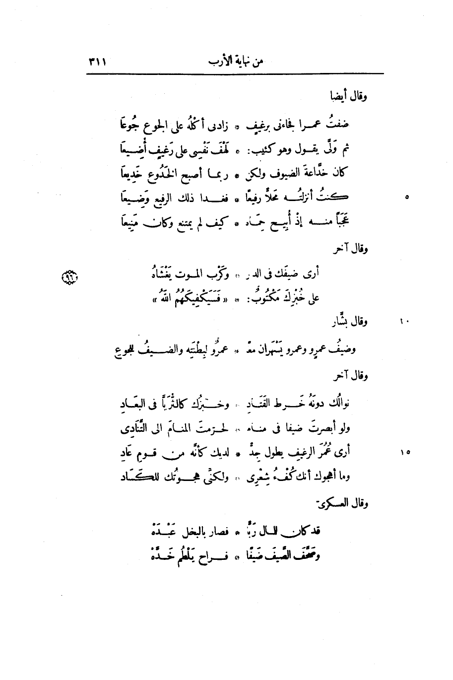ثم ولىّ يقول وهو كئيب: ... لهف نفسى على رغيف أضيعا
