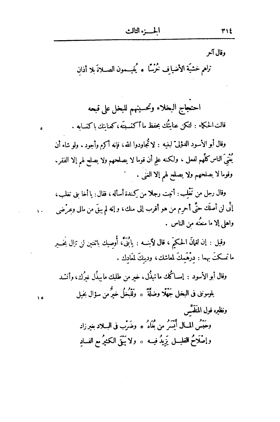 احتجاج البخلاء وتحسينهم للبخل على قبحه