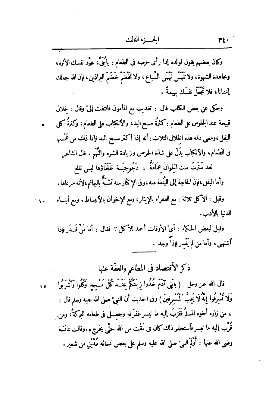 ذكر الاقتصاد في المطاعم والعفّة عنها