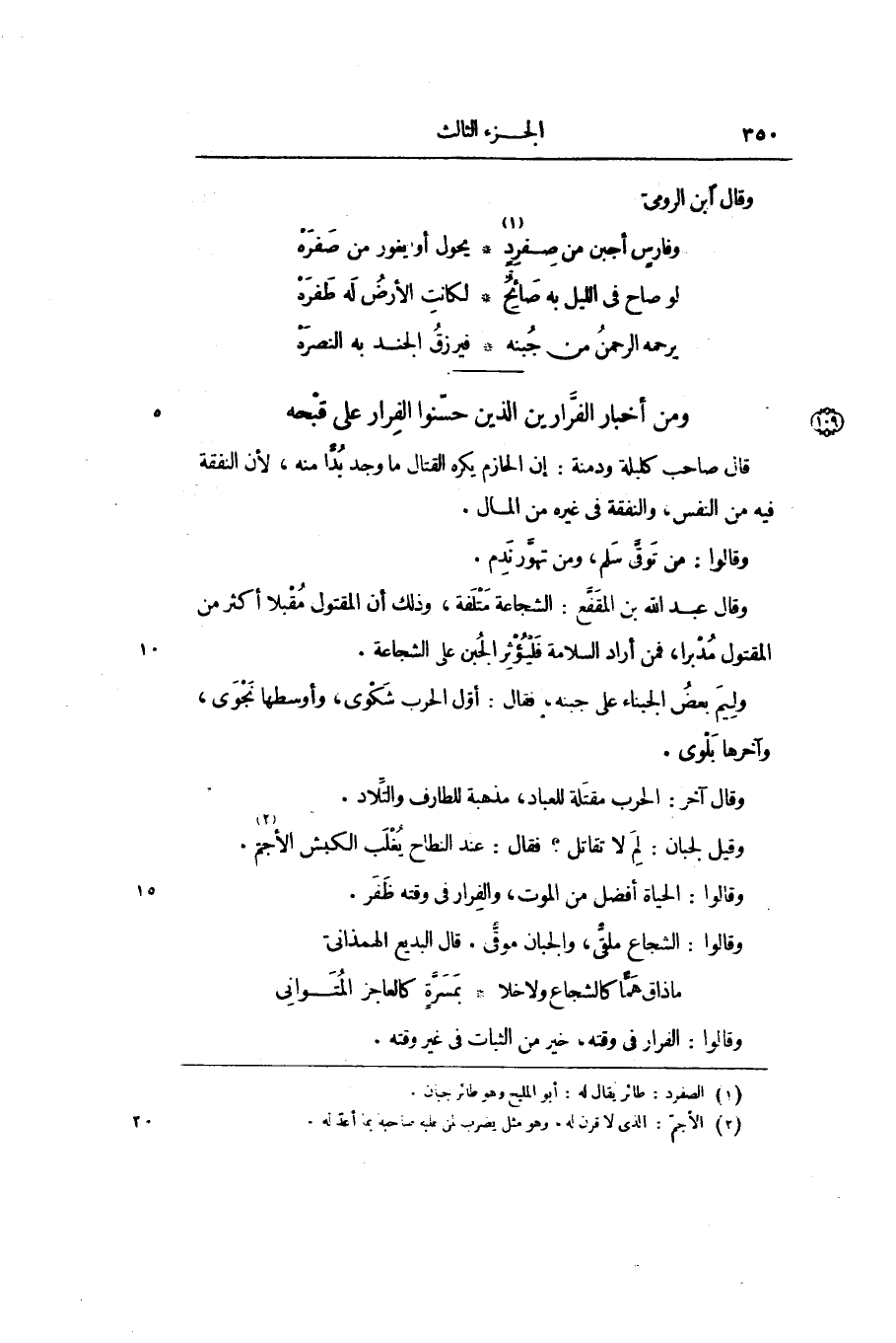 وقال عبد الله بن المقفّع: الشجاعة متلفة، وذلك أن المقتول مقبلا أكثر من المقتول مدبرا، فمن أراد السلامة فليؤثر الجبن على الشجاعة.
