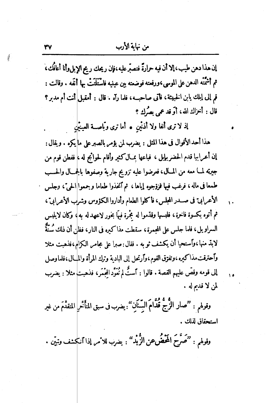 إن هذا دهن طيب، إلا أن فيه حرارة فتصبّر عليه، فإن ريحك ريح الإبل وأنا أعافك، ثم أشمّته الدهن على الموسى، ورفعته فوضعته بين عينيه فاستلتت بها أنفه. وقالت: