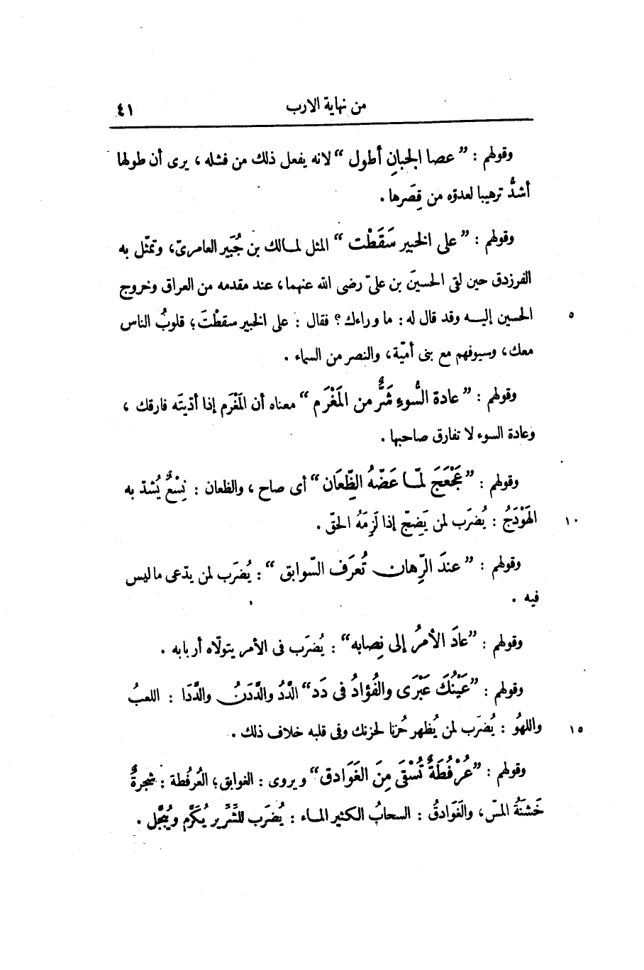 وقولهم: «على الخبير سقطت» المثل لمالك بن جبير العامرىّ، وتمثّل به الفرزدق حين لقى الحسين بن علىّ رضى الله عنهما، عند مقدمه من العراق وخروج الحسين إليه وقد قال له: ما وراءك؟ فقال: على الخبير سقطت؛ قلوب الناس معك، وسيوفهم مع بنى أميّة، والنصر من السماء.