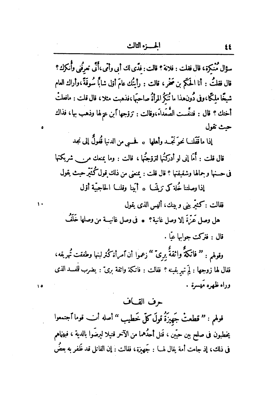 قال قلت: أمّا إنى لو أدركتها لتزوّجتها، قالت: وما يمنعك من شريكتها فى حسنها وجمالها وشقيقتها؟ قال قلت: يمنعنى من ذلك قول كثيّر حيث يقول